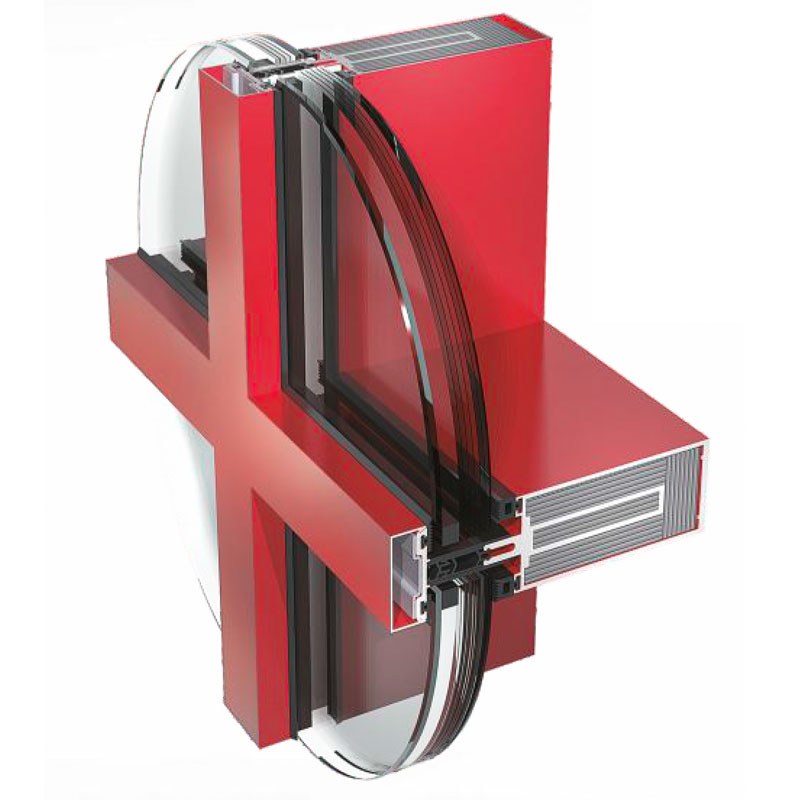 Die inneren mit Brandschutzeinlagen verstärkten Aluminiumprofile samt speziellen Riegel-Pfosten-Verbindungen sichern im Brandfall eine entsprechende Tragfähigkeit der Konstruktion. Die quellenden Streifen schützen die thermische Trennung und dichten die Verbindungen zwischen Konstruktion und Verglasung oder anderen lichtundurchlässigen Füllungen ab und bilden dadurch ein feuerwiderstandsfähiges und feuerisoliertes Element. Die Ausführung der Fassade mit Brandschutztüren sowohl ein- als auch zweiflügelig ist auch möglich.