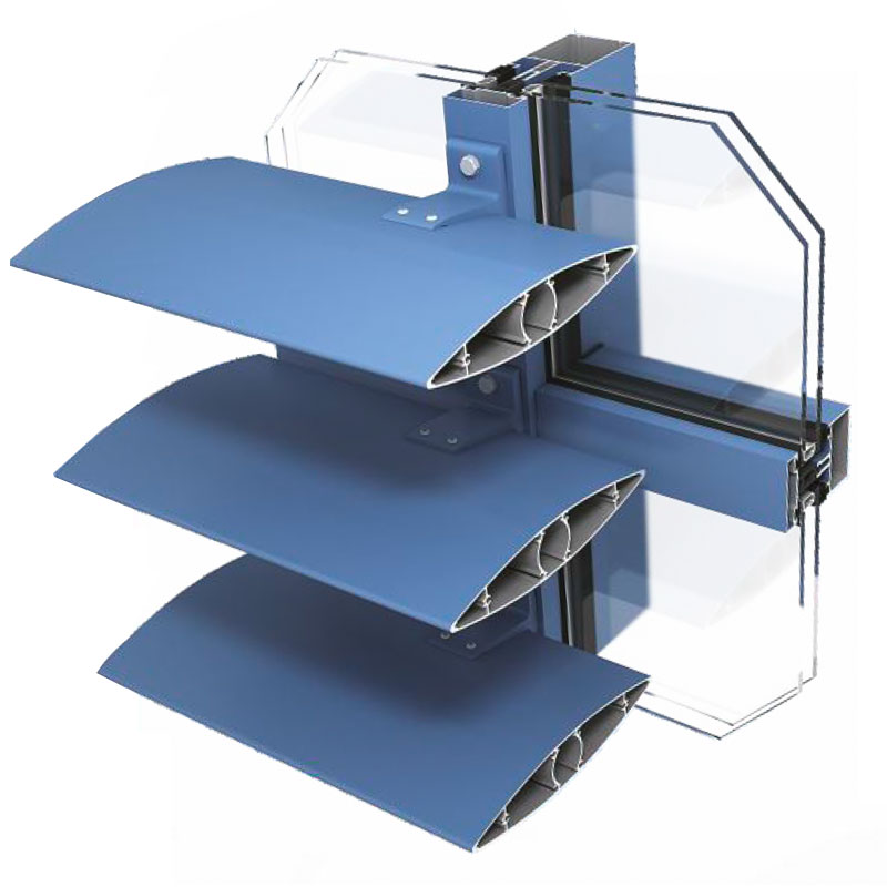 Dieses leichte Sonnenschutzsystem kommt an Tragwänden, Fassaden sowie an Fenstern zur Ausführung. Die zum System passende Verbindungselemente und Montagehalter, ermöglichen die Montage der Profile senkrecht zur Gebäudewand aber auch die horizontale Montage im Winkel von 15°, 30° und 45°.